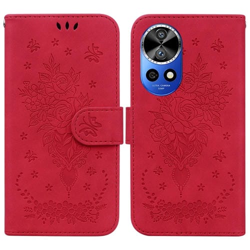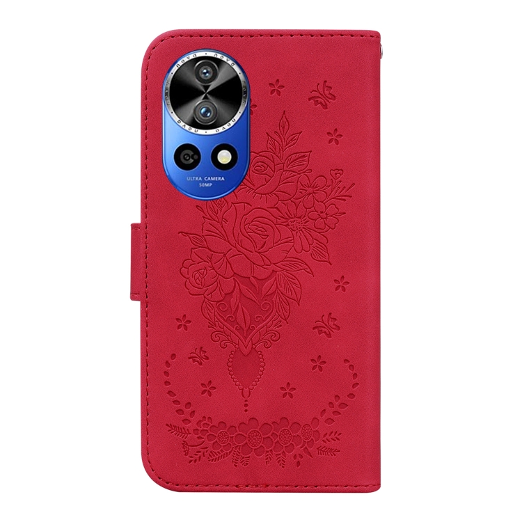 Funda para Huawei Nova 12 Pro y Nova 12 Ultra de Cuero con Relieve Mariposa y Rosa (Rojo)