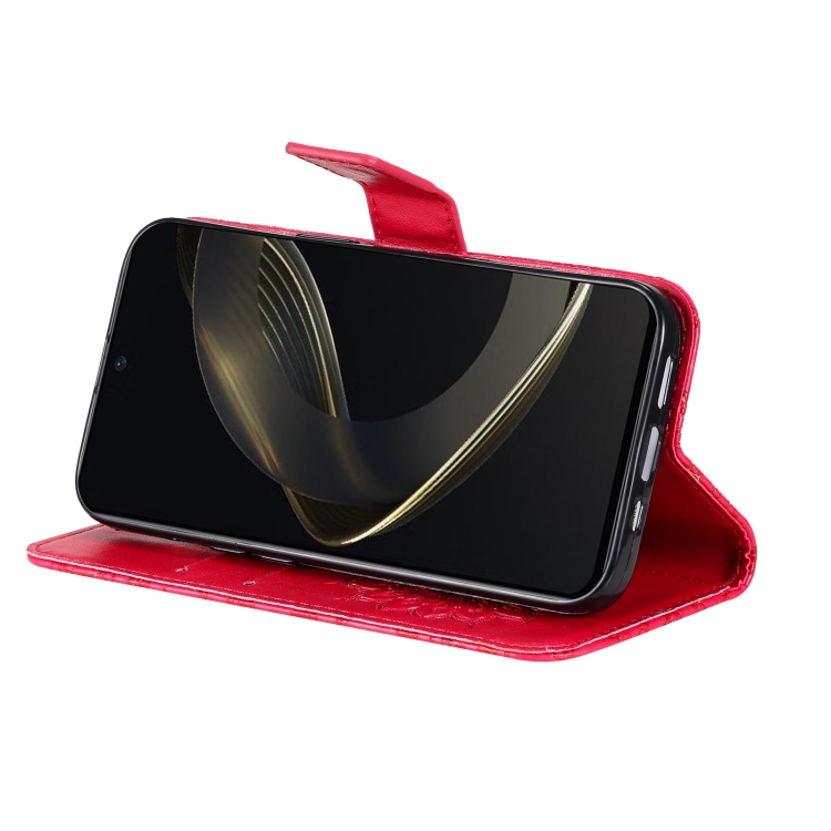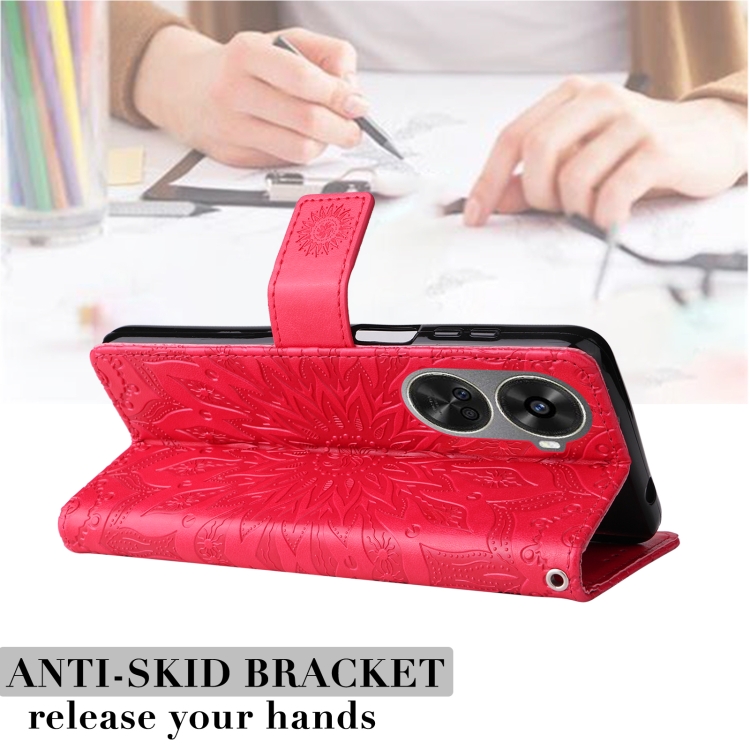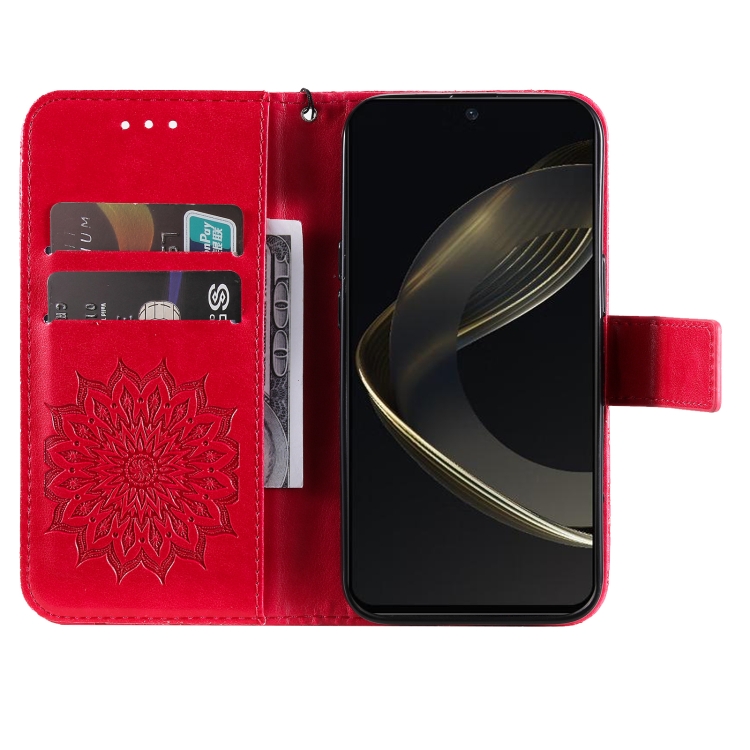 - 1x Funda para Huawei Nova 12 Se y Nova 11 Se de Cuero con Tapa y patrón de girasol en relieve (Rojo)