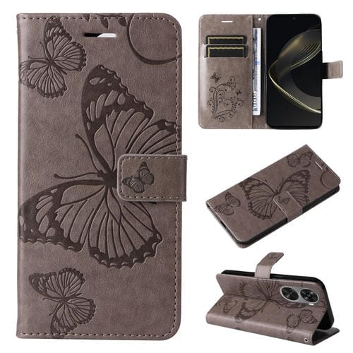Funda para Huawei Nova 12 Se y Nova 11 Se de Cuero con Tapa y Patrón Mariposa 3D (Gris)