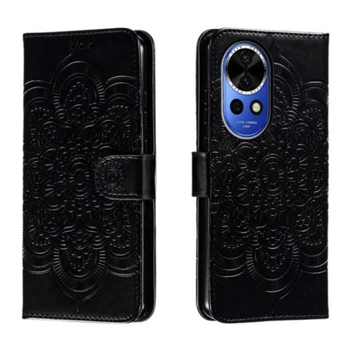 Funda de Cuero para Huawei Nova 12 con Patrón Sun Mandala en Relieve (Gris)