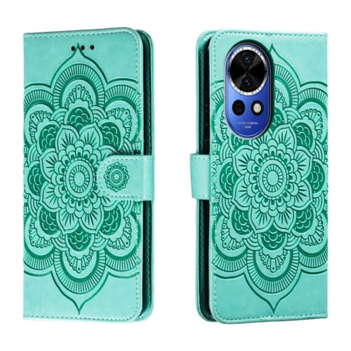 Funda de Cuero Huawei Nova 12 con Patrón en Relieve Sun Mandala (Verde)