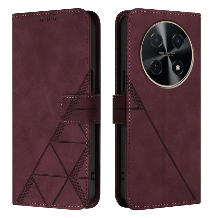 Funda para Huawei Nova 12I 4G Global Crossbody de Cuero con Tapa en Relieve 3D (Rojo Vino)