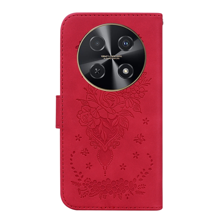 - 1x Funda para Huawei Nova 12I de Cuero con Relieve de Mariposa y Rosa (Rojo)