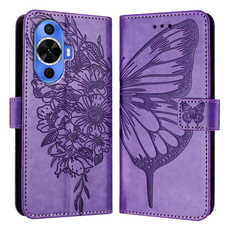 Funda de Cuero para Huawei Nova 12S 4G con Mariposa en Relieve (Púrpura)