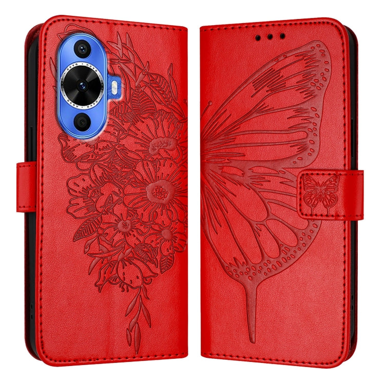 Funda de Cuero para Huawei Nova 12S 4G con Mariposa en Relieve (Rojo)