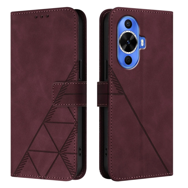 Funda para Huawei Nova 12S 4G Global Cuero con Tapa En Relieve 3D (Rojo Vino)