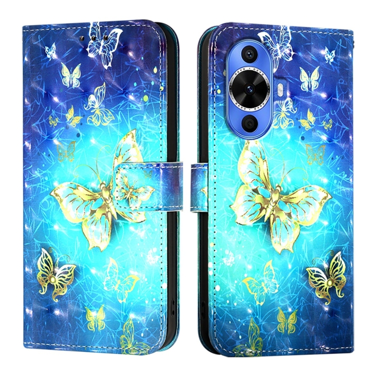 Funda de Cuero para Huawei Nova 12S con Tapa Horizontal y Pintura 3D (Mariposa Dorada)