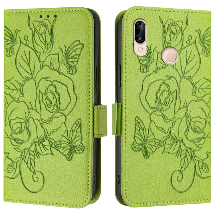 - 1x Funda de Cuero Antirrobo RFID para Huawei P20 Lite / Nova 3E con Relieve Rosa (Verde)