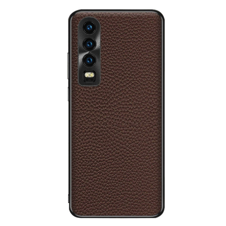 Funda para Teléfono Huawei P30 con Textura Litchi de Cuero Genuino (Café)