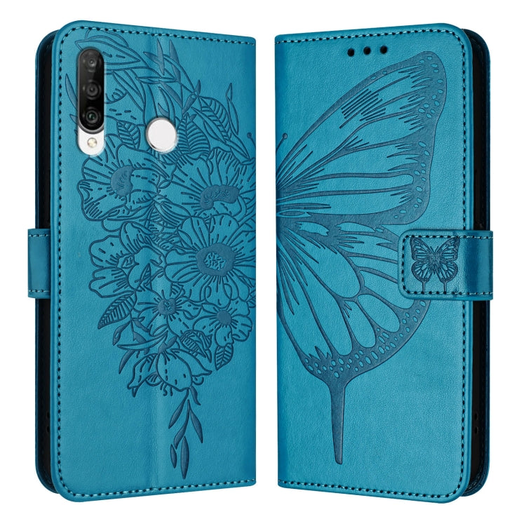 Funda de Cuero para Huawei P30 Lite / Nova 4E con Mariposa en Relieve (Azul)
