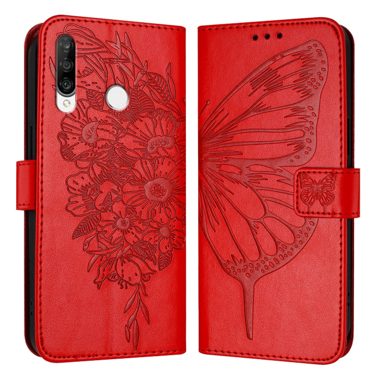Funda de Cuero para Huawei P30 Lite / Nova 4E con Mariposa en Relieve (Rojo)