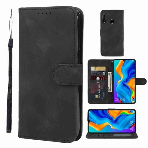 Funda de Cuero para Huawei P30 Lite con Líneas Geométricas (Negro)