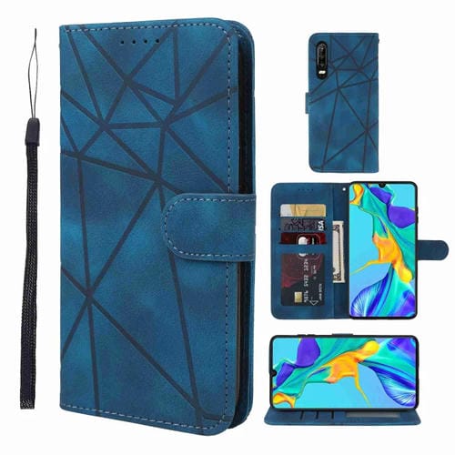Funda de Cuero para Huawei P30 Skin Feel con Líneas Geométricas (Azul)