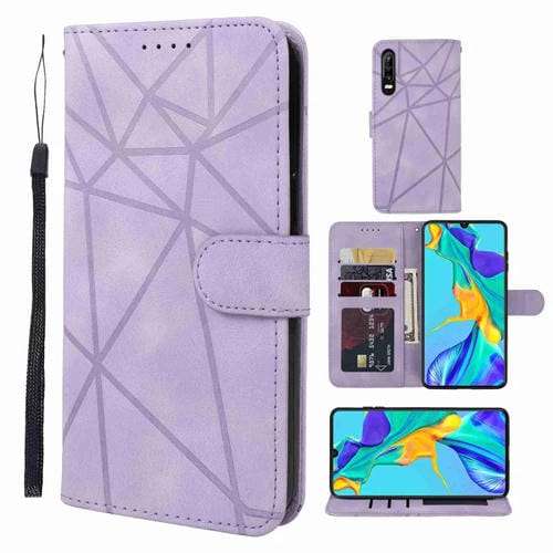 - 1x Funda de Cuero para Huawei P30 Skin Feel con Líneas Geométricas (Púrpura)