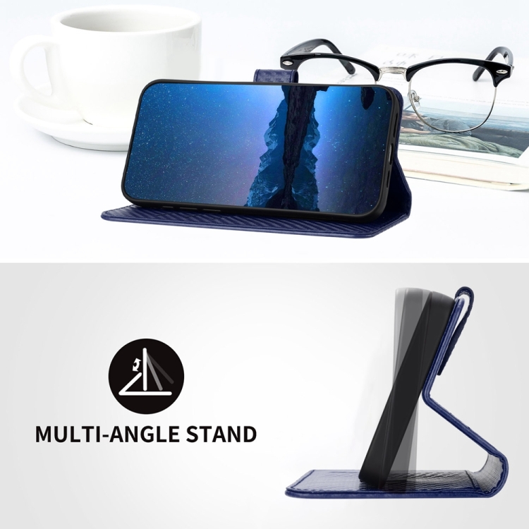 Funda de Cuero para Huawei P30 Yx0070 con Hebilla de Fibra de Carbono y Cordón (Azul Real)