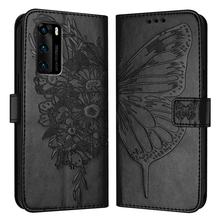 Funda de Cuero para Huawei P40 con Mariposa en Relieve (Negro)