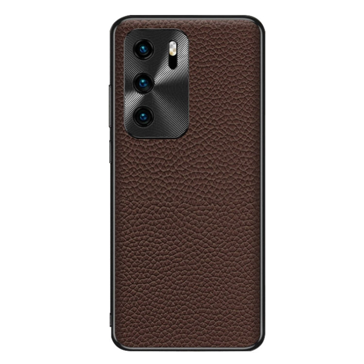 Funda para Teléfono Huawei P40 Textura Litchi Cuero Genuino (Café)