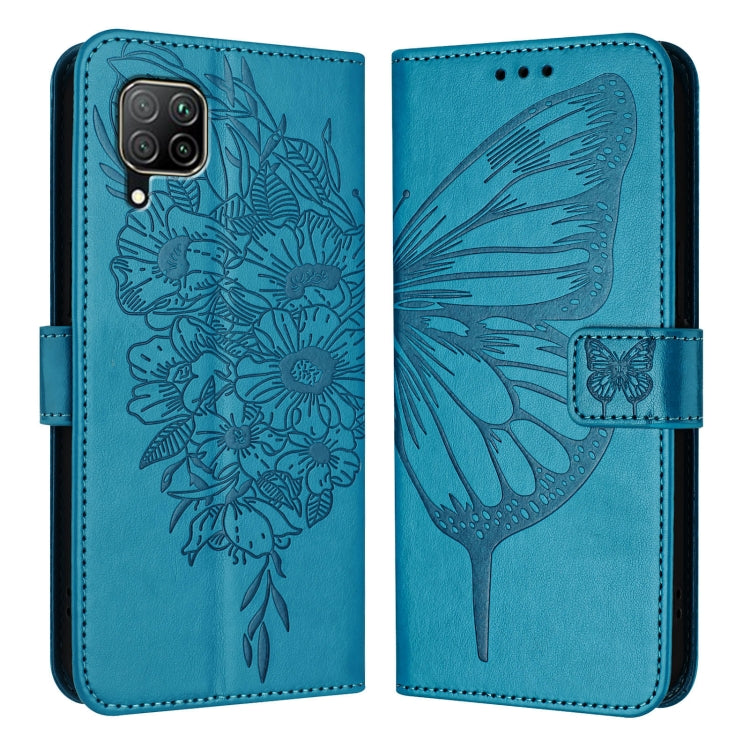 Funda de Cuero para Huawei P40 Lite 4G y Nova 6 Se con Mariposa en Relieve (Azul)