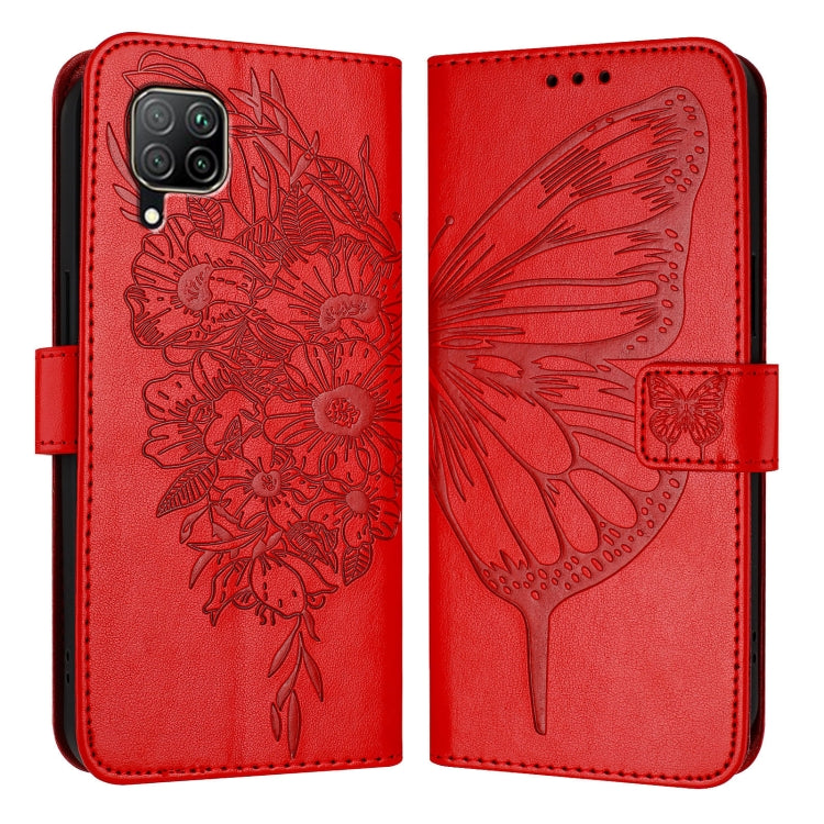 Funda para Huawei P40 Lite 4G y Nova 6 Se de Cuero con Mariposa en Relieve (Rojo)