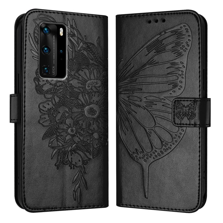 Funda de Cuero para Huawei P40 Pro con Mariposa en Relieve (Negro)