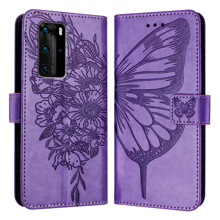 Funda de Cuero para Huawei P40 Pro con Mariposa en Relieve (Púrpura)