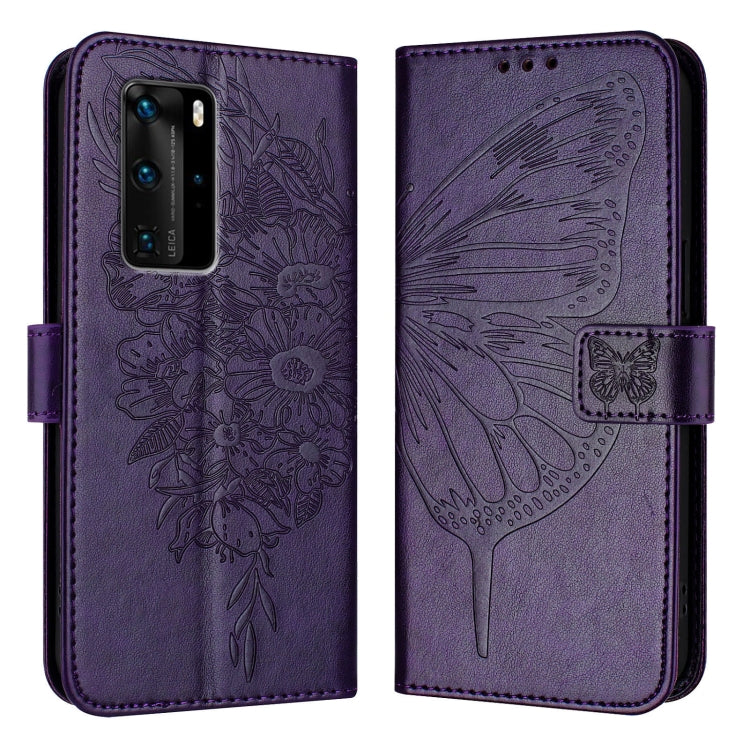 Funda de Cuero para Huawei P40 Pro con Mariposa en Relieve (Púrpura Oscuro)