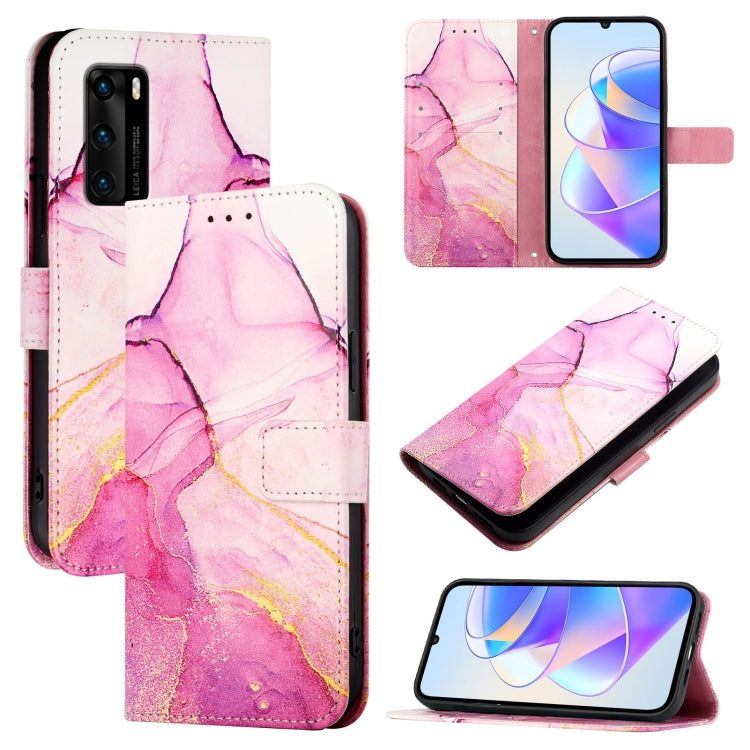 Funda de Cuero con Tapa para Huawei P40 Pt003 con Patrón de Mármol (Rosa Púrpura Dorado)