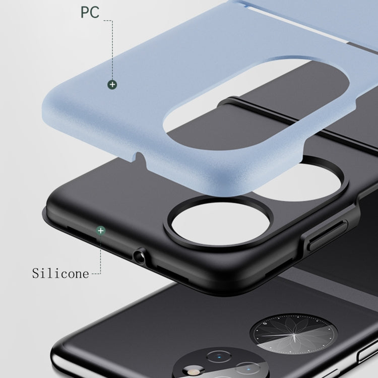 Para Huawei P50 Pocket Contrasting Quicksand PC + Funda de teléfono a prueba de golpes de silicona (azul marino)