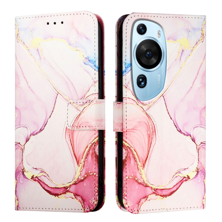 Funda de Cuero con Tapa para Huawei P60 Art Pt003 con Patrón de Mármol (Oro Rosa)