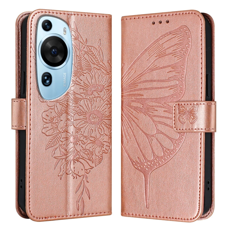 Funda de Cuero para Huawei P60 con Mariposa en Relieve Artístico (Oro Rosa)