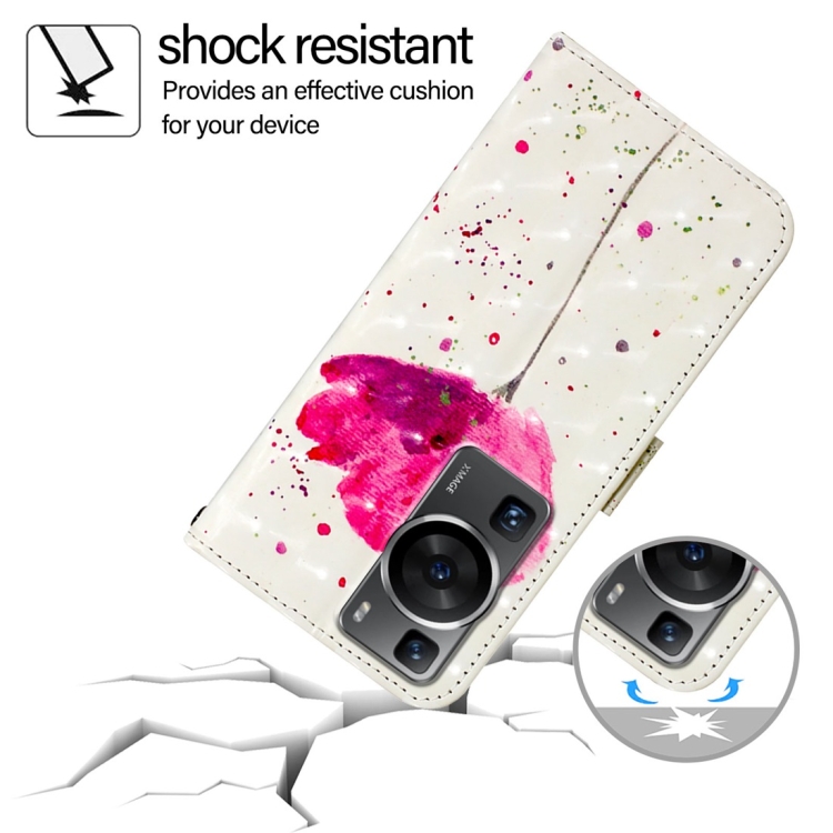 - 1x Funda de Cuero para Huawei P60 con Tapa Horizontal y Pintura 3D (Flor)