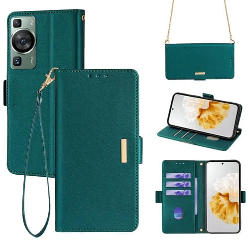 Funda de Cuero para Huawei P60 y P60 Pro con Cadena Cruzada (Verde)