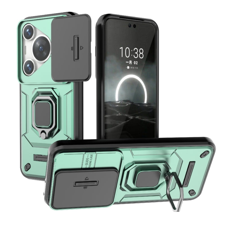 Funda para Huawei P70 Pro 5G Sliding Camshield TPU + PC a Prueba de Golpes con Soporte (Verde)