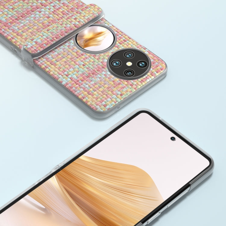 Funda 3 en 1 para Huawei Pocket 2 de PU con Marco Translúcido Esmerilado y Textura Rómbica (Rosa)