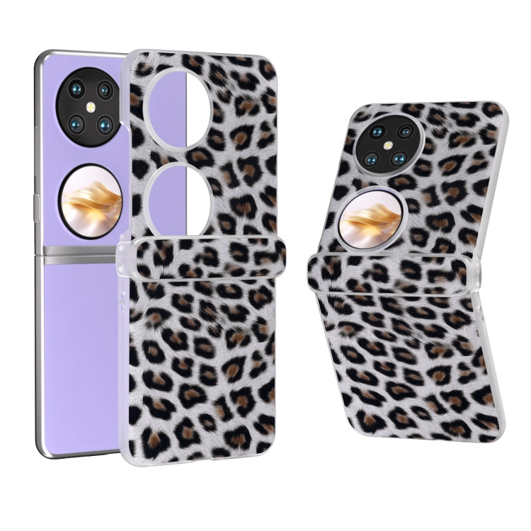 Estuche para Huawei Pocket 2 con Patrón Leopardo y Marco Transparente Esmerilado de Tres Partes (Leopardo Plateado)