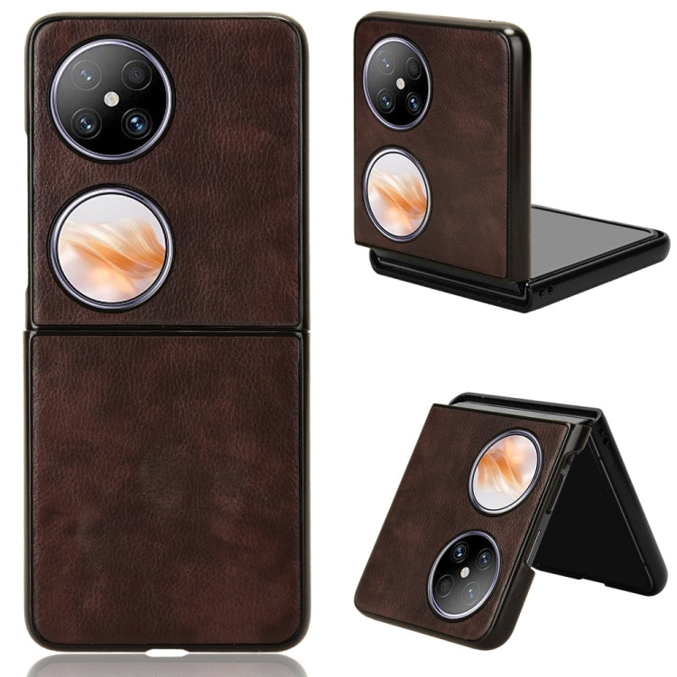 Funda para Huawei Pocket 2 con Contraportada y Textura Litchi (Marrón)