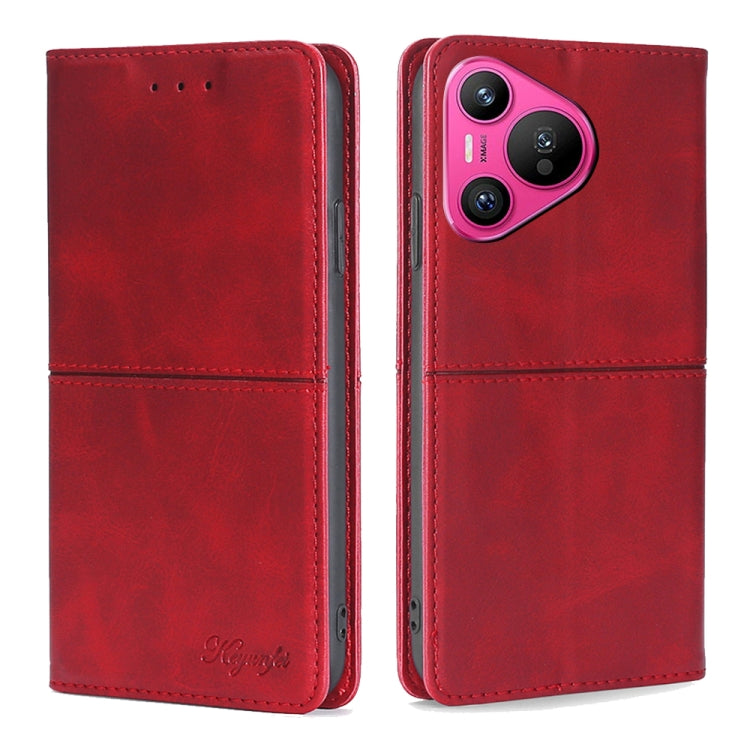 Funda de Cuero Magnético para Huawei Pura 70 5G con Textura de Vaca (Rojo)