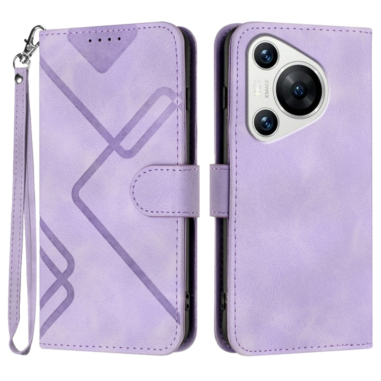 Funda de Cuero para Huawei Pura 70 con Sensación de Piel y Patrón de Líneas (Púrpura Claro)
