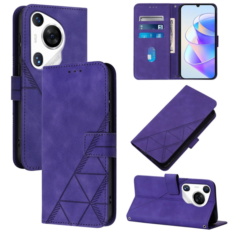 Funda de Cuero para Huawei Pura 70 Pro Crossbody con Tapa en Relieve 3D (Púrpura)