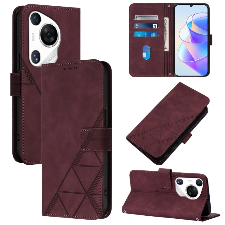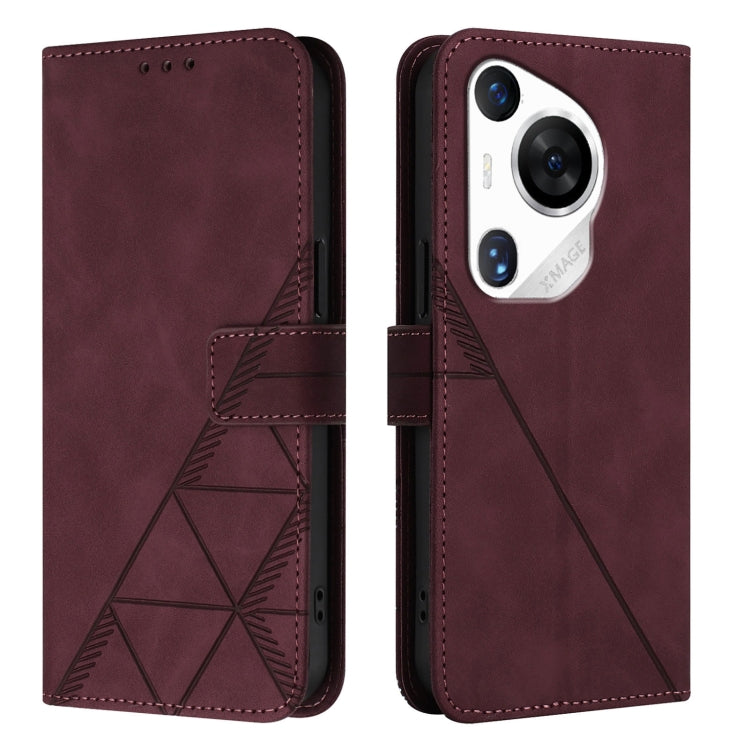 Funda de Cuero para Huawei Pura 70 Pro Crossbody con Tapa en Relieve 3D (Rojo Vino)