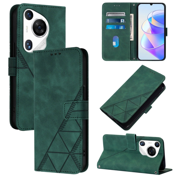 Funda de Cuero para Huawei Pura 70 Pro Crossbody con Tapa en Relieve 3D (Verde Oscuro)