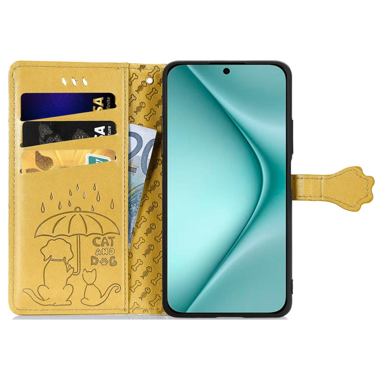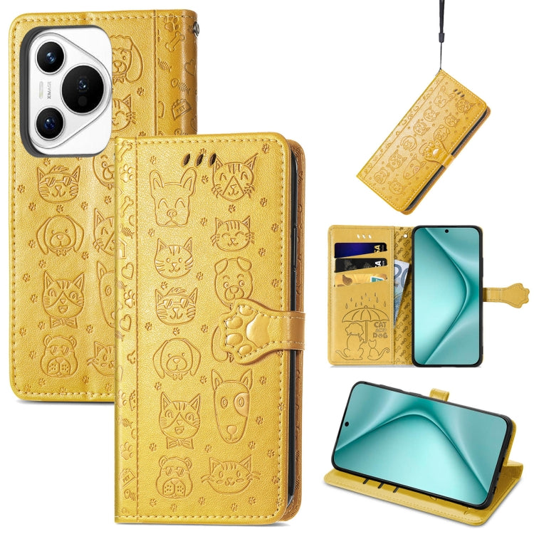 Funda para Huawei Pura 70 Pro+ de Cuero con Relieve de Perro y Gato (Amarillo)
