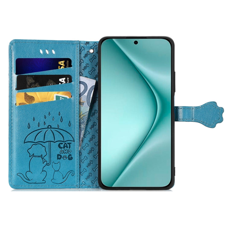 Funda para Huawei Pura 70 Pro+ de Cuero con Relieve de Perro y Gato (Azul)