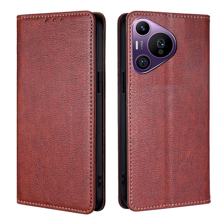 Estuche para Huawei Pura 70 Pro y Pro+ de Cuero Magnético con Aceite Brillante (Marrón)