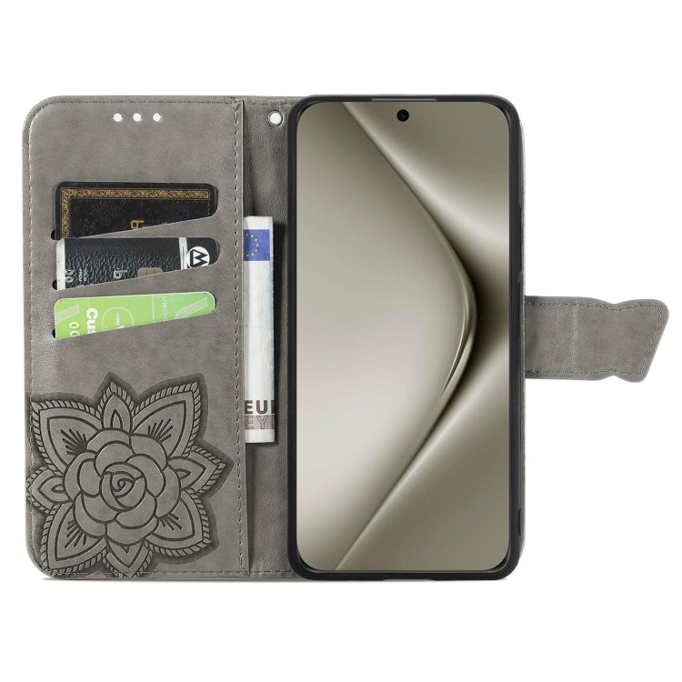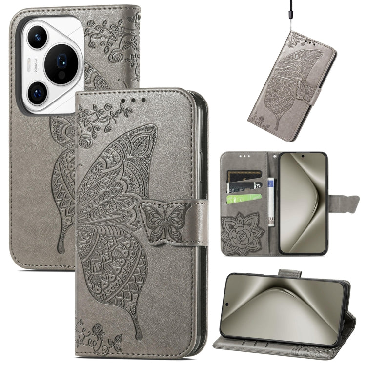 Funda de Cuero En Relieve para Huawei Pura 70 Ultra Butterfly Love Flower (Gris)