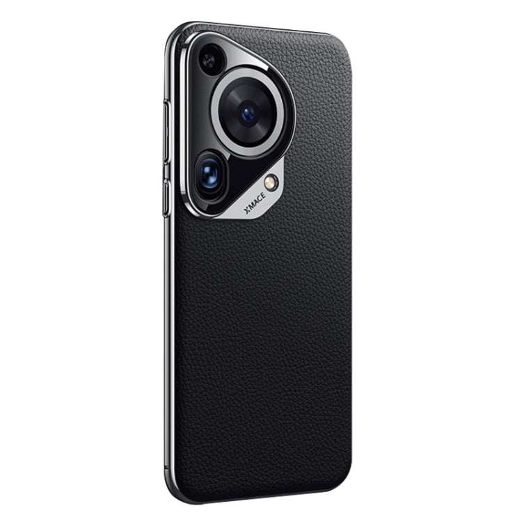 Funda de Cuero Genuino Huawei Pura 70 Ultra Litchi Texture para Teléfono (Negro)