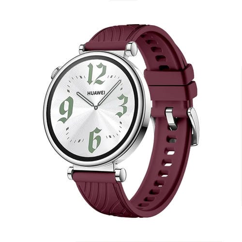 Correa de Silicona para Huawei Watch GT 4 con Hebilla Plateada y Textura 18mm (Rojo Vino)