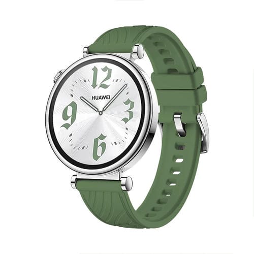 Correa de Silicona para Huawei Watch GT 4 con Hebilla Plateada y Textura 18mm (Verde Abeto)