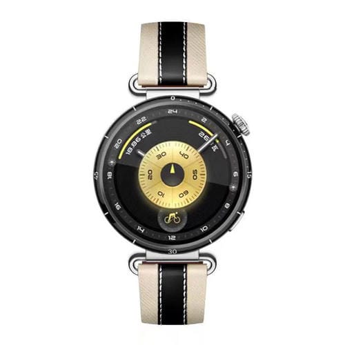 Para Huawei Watch GT 6 41mm xDfind correa de reloj de cuero genuino empalmado (negro blanco)