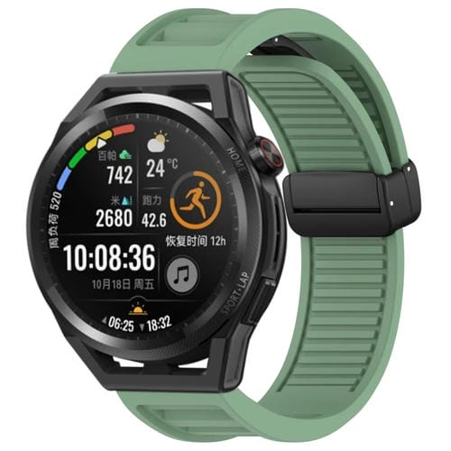 Correa de Silicona para Huawei Watch GT Runner 22mm con Hebilla Magnética Plegable (Verde)